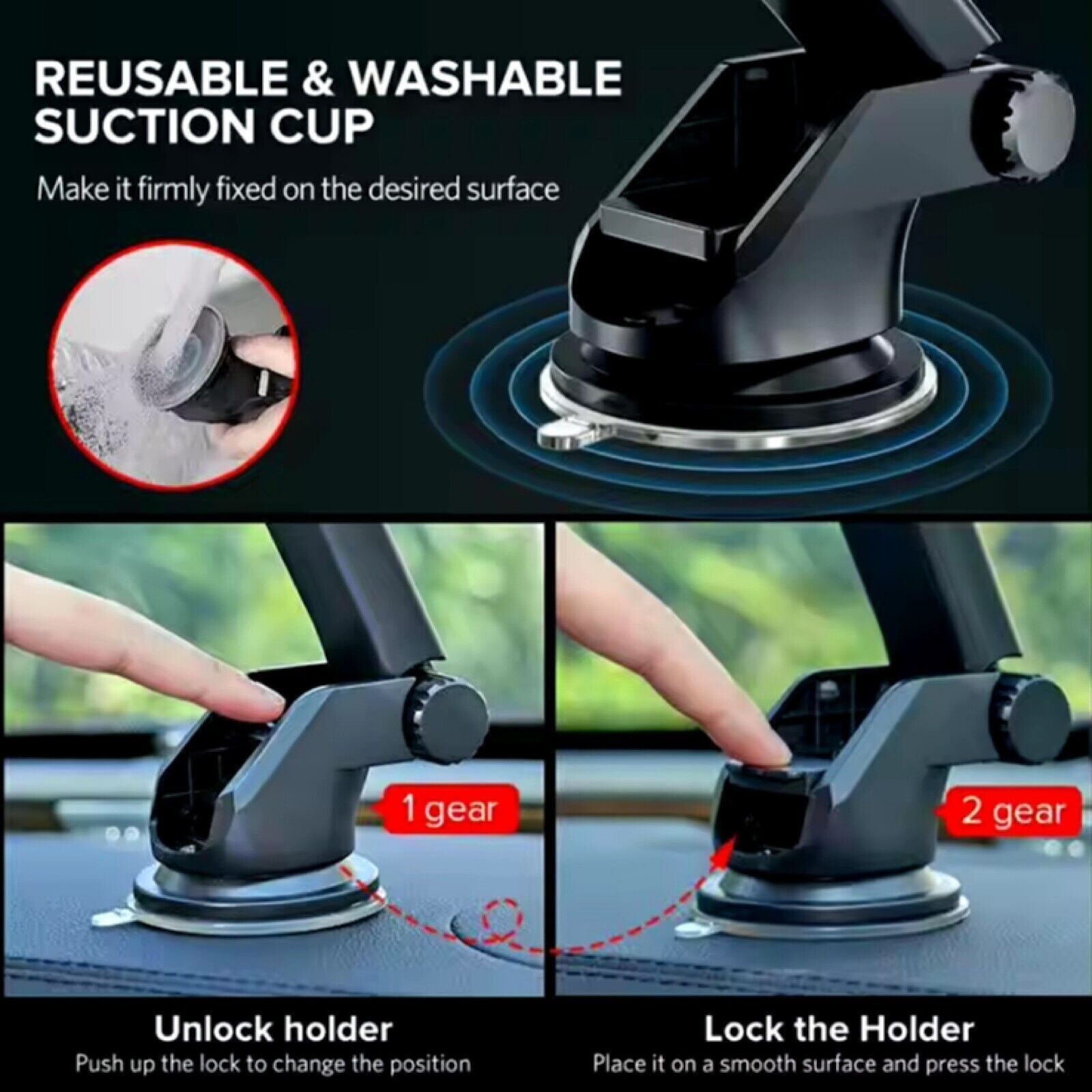Please note that for strong hold, you need to secure a suction cup through the button. Photos added for reference.